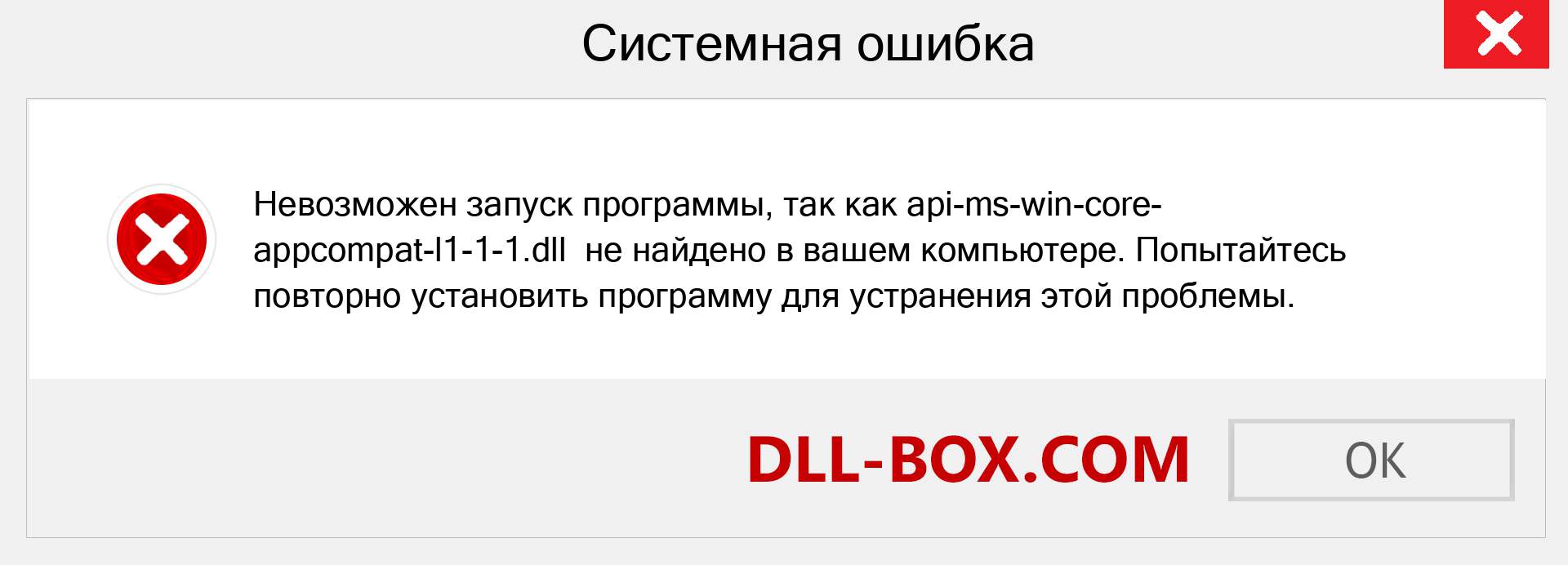 1. Программа не может запуститься, потому что на вашем компьютере отсутствует api-ms-win-core-appcompat-l1-1-1.dll. Попробуйте переустановить программу, чтобы решить эту проблему.